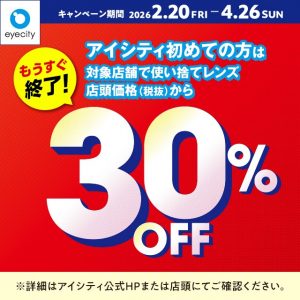 【もうすぐ終了!】\アイシティ初めての方は/対象店舗で使い捨てレンズが店頭価格(税抜)から30%OFF!アイシティ大泉学園 -