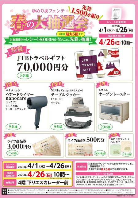 【4月26日(日)実施!】ゆめりあフェンテ春の大抽選会